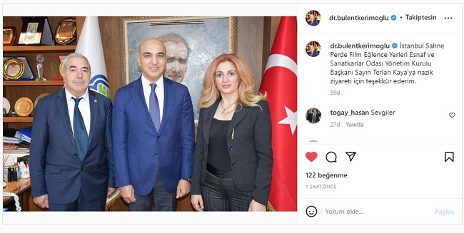 Başkanımız Terlan Kaya Bakırköy Belediye Başkanı Dr. Bülent Kerimoğlu’nu ziyaret etti. Sahne Sanatçıları hakkında görüş alışverişinde bulundular.