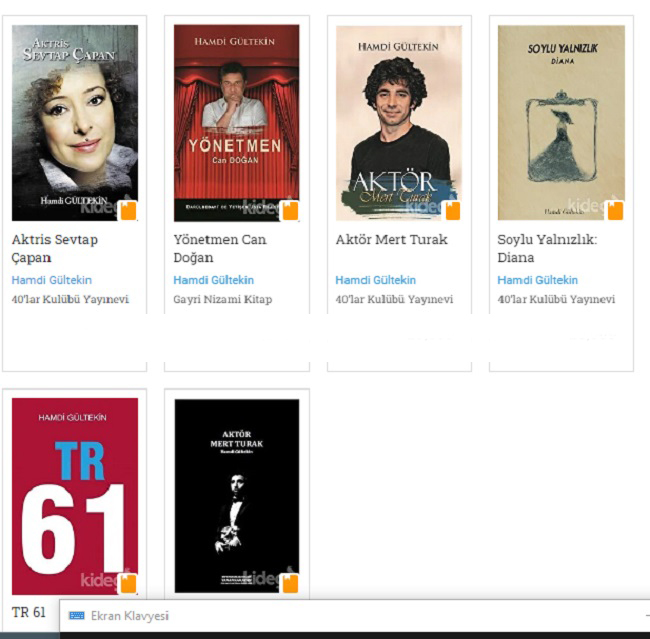 Başlıca kitapları alfabetik sırayla; Aktris Sevtap Çapan, Aktör Mert Turak, Soylu Yalnızlık: Diana, TR 61, Yönetmen Can Doğan olarak sayılabilir.